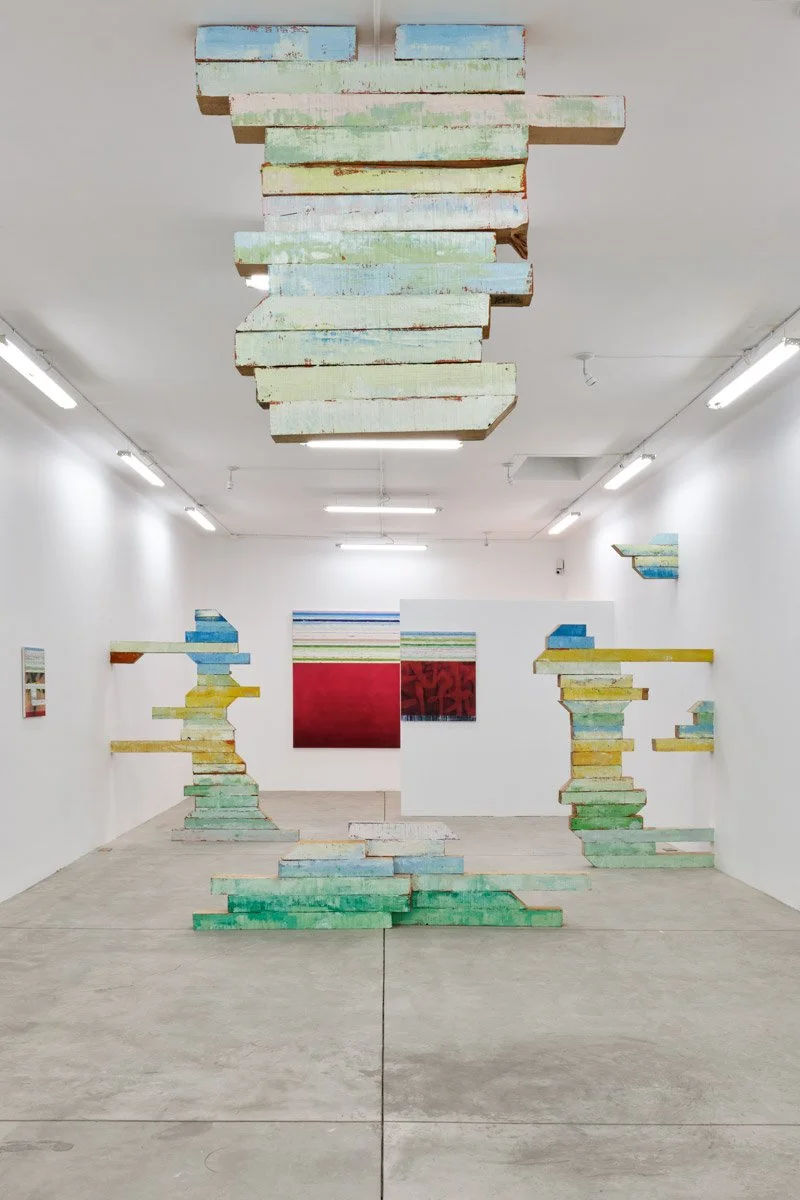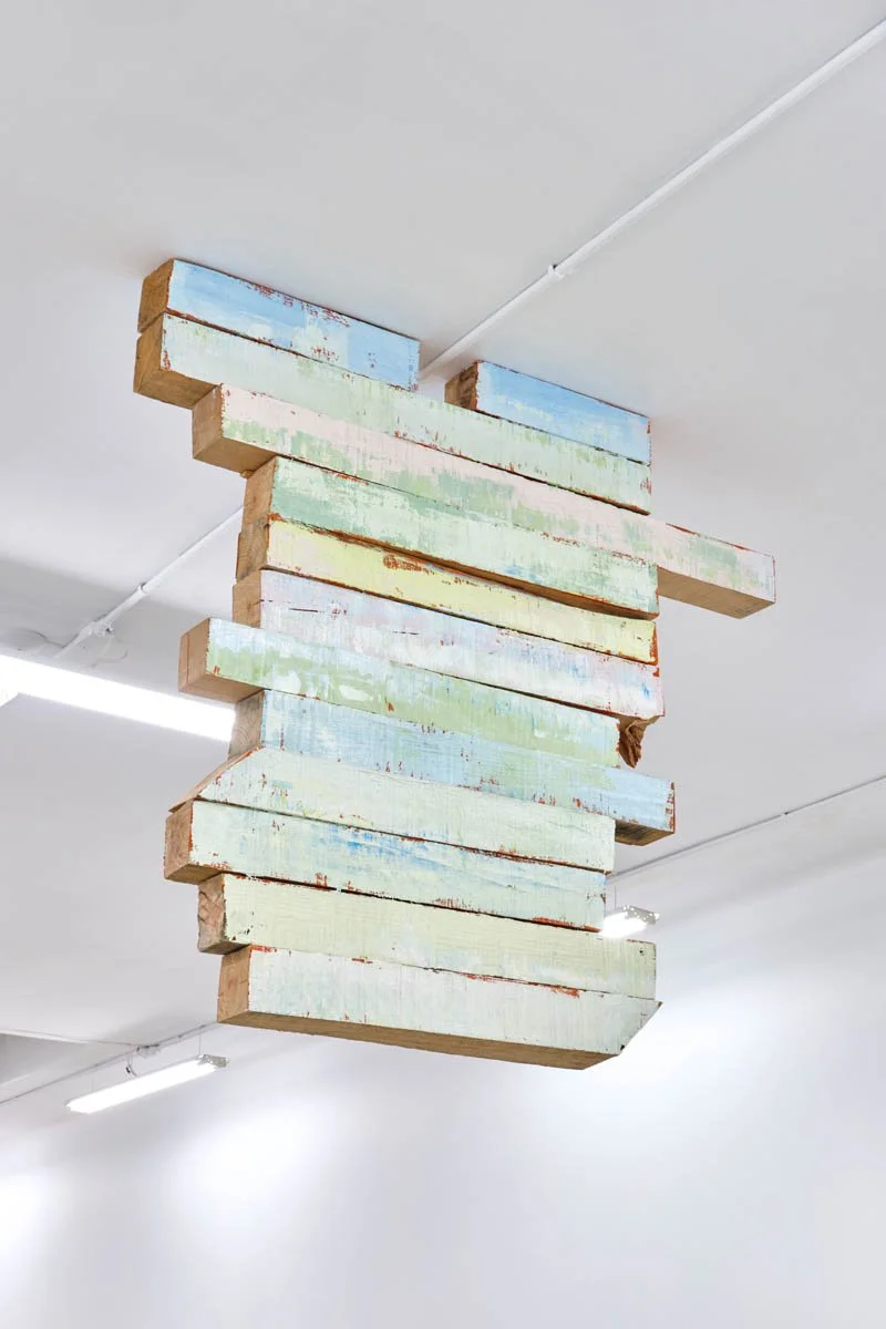 Mirar atrás es una exhibición y cuerpo de obra sobre transitar el dolor, la forma, la pintura y las emociones que nos genera. La pintura bidimensional dialoga con estructuras de construcción de una pintura expandida. A lo largo del trayecto es posible mirar atrás para enfrentarse a una otra visión.